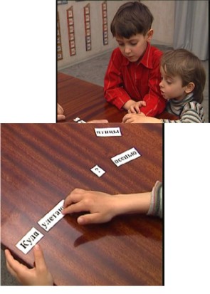 Слова я больше не разделяю пробелами на слоги. Предложения составляю поначалу из несложных для прочтения слов. Я не загружаю память ребенка никакими терминами, смысла которых он пока не может понять, не пытаюсь втолковать ему, что такое понижающаяся интонация и т.п. Ведь я не собираюсь делать из него маленького филолога. Я просто показываю ему точку в конце предложения и говорю, что нужно дочитать до точки и остановиться. А потом повторить то, что он прочитал, стараясь при повторении называть каждое слово целиком. Особенно нравится детям читать восклицательные предложения громким голосом, а вопросительные так, как будто они о чем-то спрашивают.